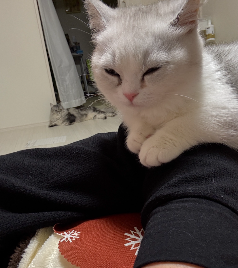 暖かい部屋の中でぬくぬくしているなか、完全にリラックスモードです。