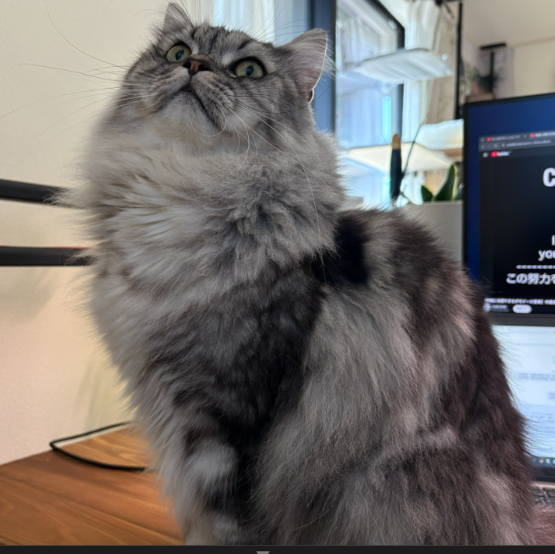 それでも1日に一回は甘えた声で部屋に入ってきては机の上に飛び乗って様子をうかがいにきます。