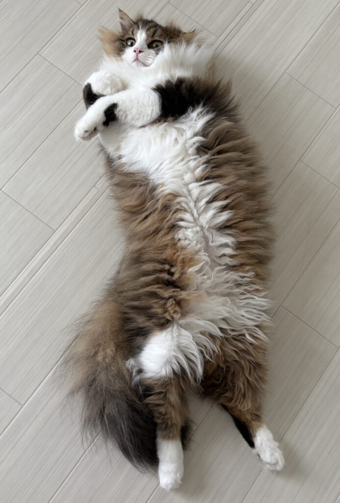 寿命については、我が家の猫たちは1歳前後で経験は未知です。ラガマフィンは大型長毛種ゆえなのか、一般的には他の猫よりも短い気がします。ただ、この件は調べてみると、大型長毛種が良くなりやすい病気が起因しているようです。普段のブラッシングや餌には十分気を付けて長生きしてくれることを願っています。